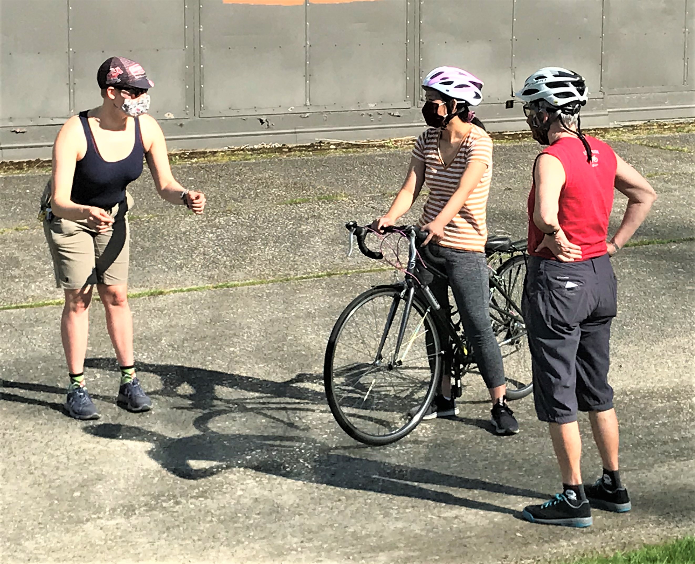 Cascade Board President Tamara Schmautz, right, gathered with staff, volunteers, and friends for a pre-ride of the first summertime Chilly Hilly.
