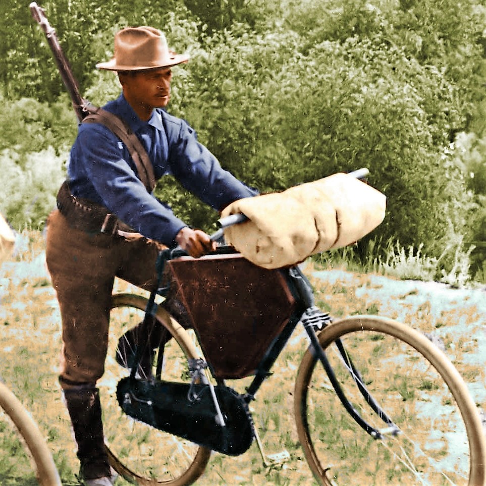 Known as the Buffalo Soldiers, this legendary Army unit of 20 Black men completed one of our nation’s greatest bike adventures while serving in the racially segregated military in 1897. Riding heavy, singlespeed Spalding bikes laden with 59 pounds of gear and a rifle, they pedaled and pushed their bicycles 1,900 miles on unpaved roads through forests and deserts, over mountains and across rivers, enduring both frigid temperatures and oppressive heat.