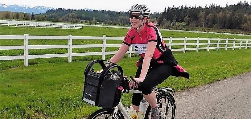 Chester the long coat chihuahua loves bike rides. He has participated in the Emerald City Ride twice, done many Free Group Rides, and in 2016 even crossed the finish line of the Seattle to Portland Bicycle Classic thanks to his humans.