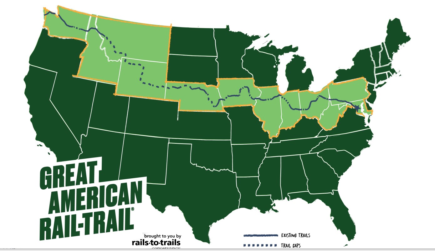 The Great American crosses 12 states and will be the nation’s first cross-country biking and walking trail when completed. It is more than halfway completed, with about 88 gaps to be filled, including some in Washington state.