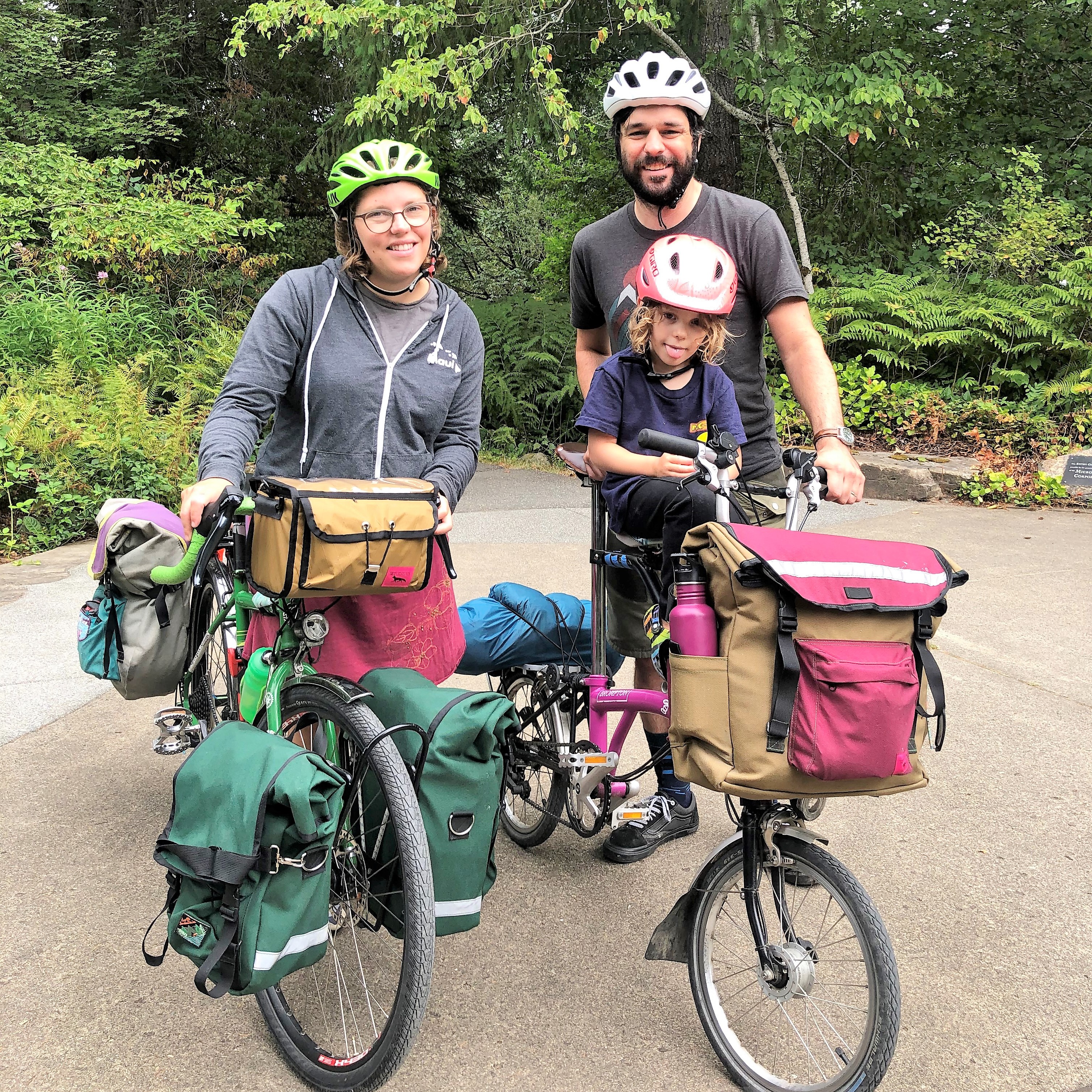 In addition to the electric cargo bike that he and Kelly use for bringing their daughter Fiona to school, shopping, and family bike trips, Fucoloro owns a “Daddy road bike” with a kid seat on the top bar, and a Brompton folding bike with a child seat attachment.