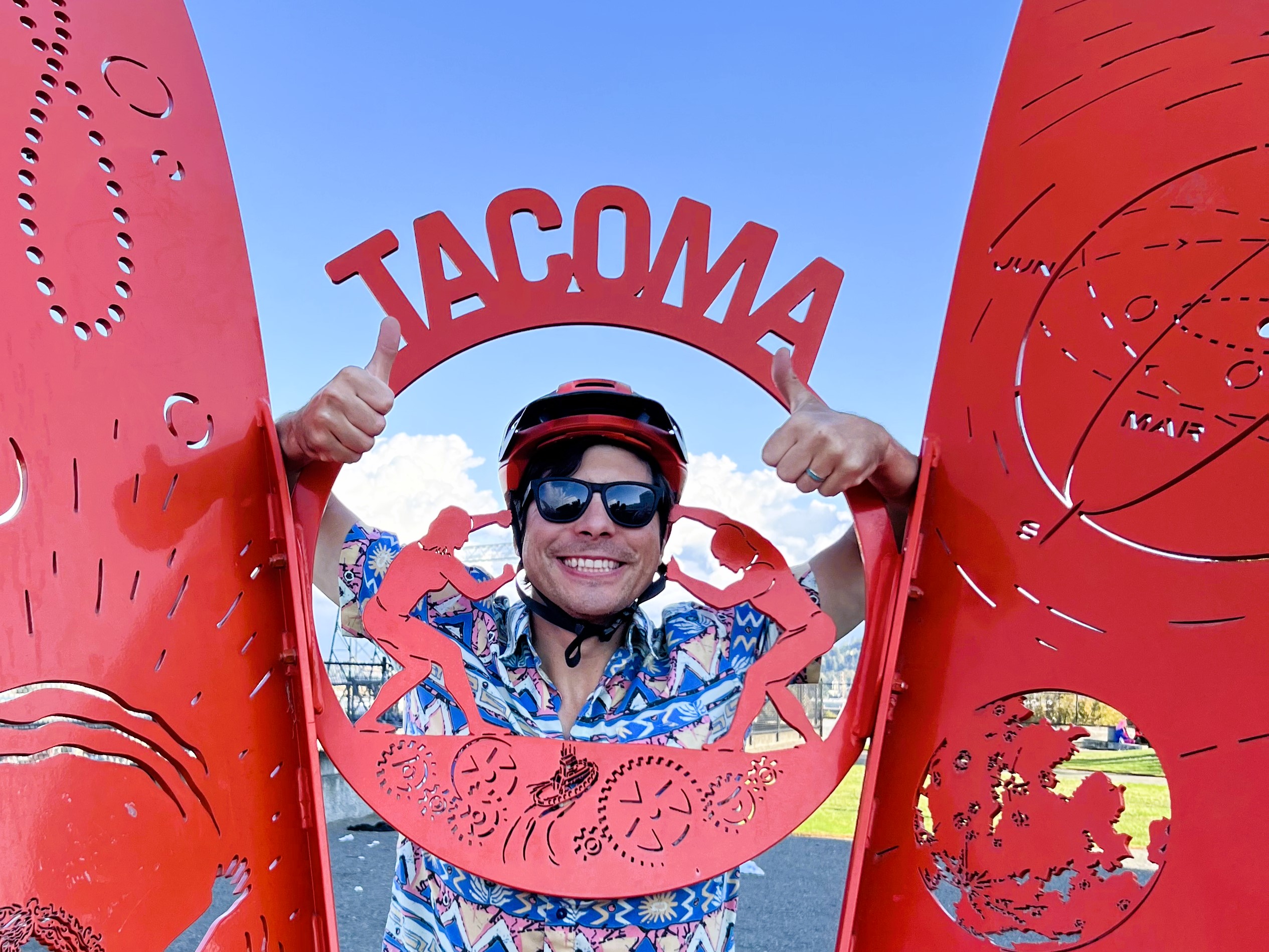 The Tacoma ride took place on the eve of Washington Bikes’ two-day Bike, Walk, and Roll Summit. We started downtown near the Tacoma Art Museum, where the city is building an extension of the Prairie Line Trail from South 21st Street to South 25th Street. Known as Phase 2 of the Prairie Line Trail Development, this new segment of shared-use path in Tacoma’s Brewery District will link the Prairie Line to the existing Water Flume Line Trail.