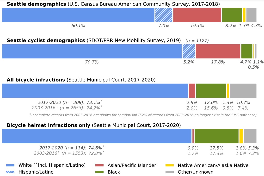 Racial disparities in the enforcement of helmet laws are not just a problem in Seattle. National reporting has shown that communities of color have been ticketed and stopped at disproportionate rates in other cities, leading some communities to repeal their helmet ordinances.