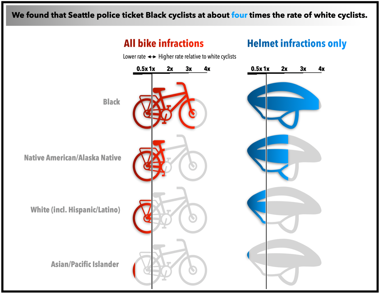 Seattle police have stopped and ticketed Black people for not wearing bicycle helmets at a rate about four times greater than for white people since 2003, according to data obtained by the King County Helmet Law Working Group, of which Cascade is a member.