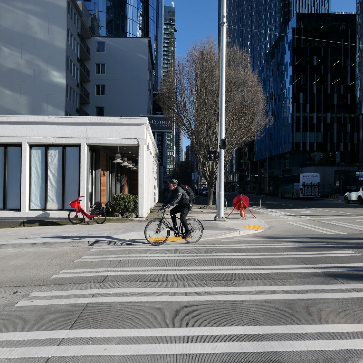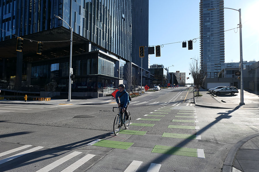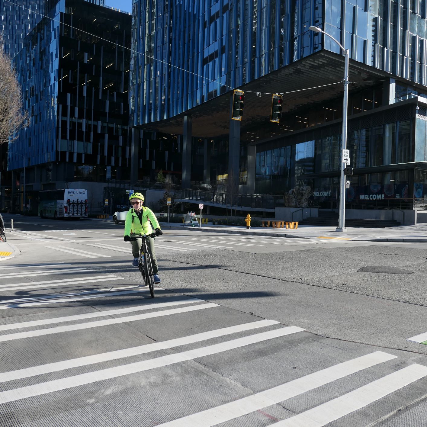 “It feels like Sunday morning,” one bicyclist told me outside the normally bustling Amazon headquarters.