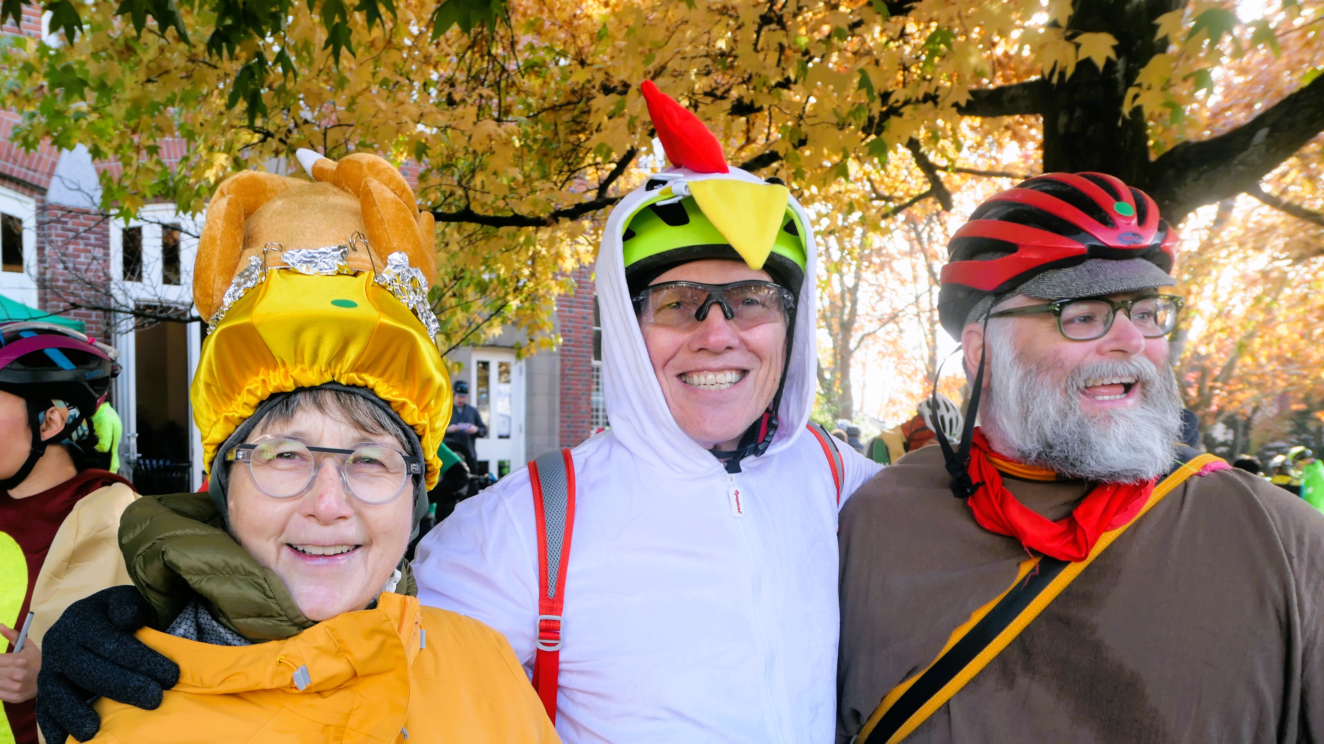 Cranksgiving 2023 on Nov. 18 was a huge success. More than 170 people representing 50 teams collected 3,700 pounds of food and goods for three Seattle food banks. The costumes and smiles of participants were a joy to behold. Enjoy the photos below, and have a happy Thanksgiving, turkeys!