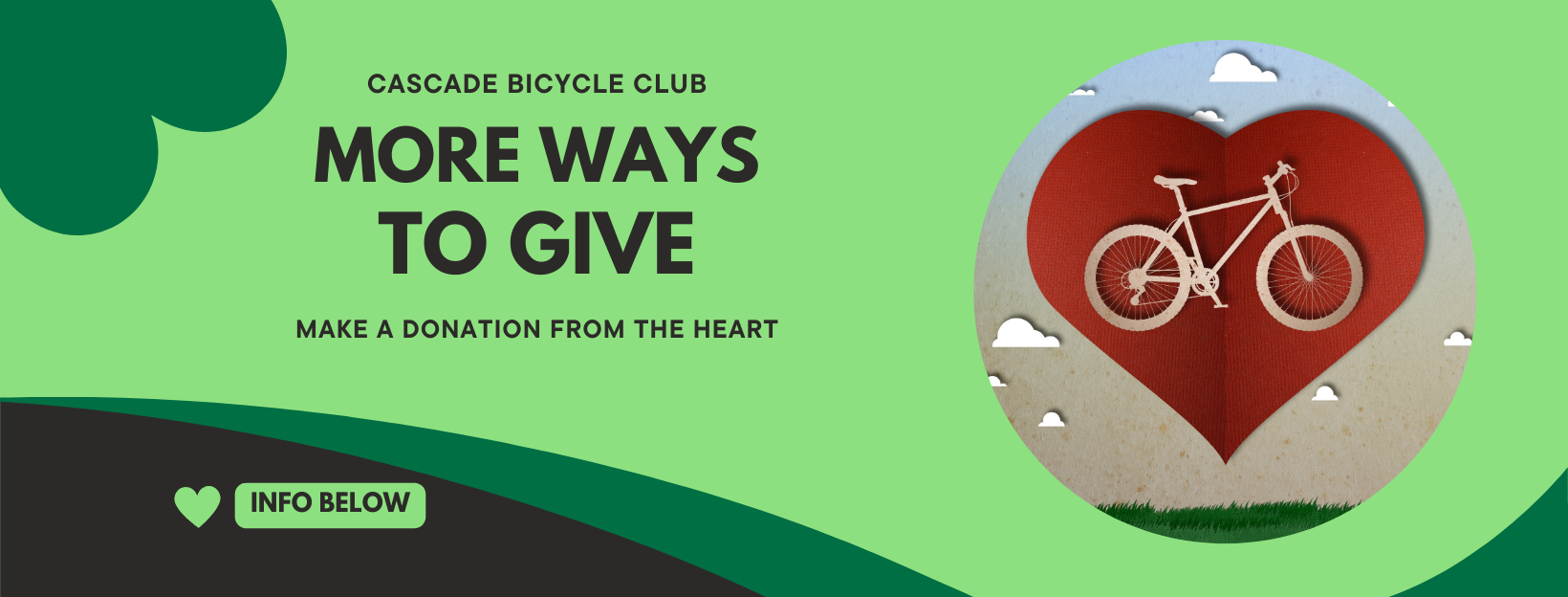Checks payable to “Cascade Bicycle Club”. Please write “donation” in the memo line and include a note with your full name and current address so we can thank you and send a tax receipt for your records.