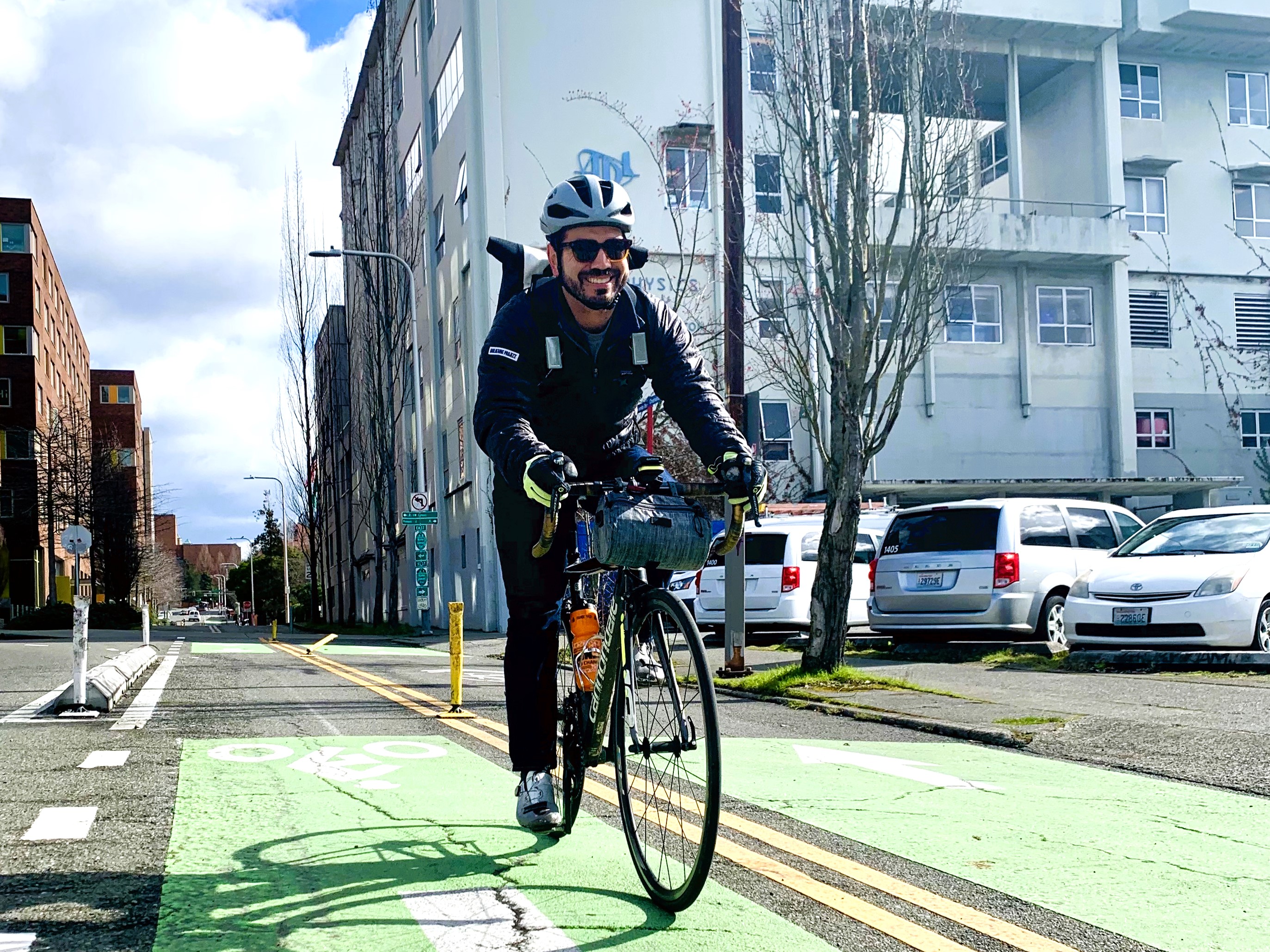 That lived experience of growing up in a community with poor air quality and no safe bike infrastructure guides his efforts today to improve bicycling for all in Seattle–regardless of race, age, income, or zip code.