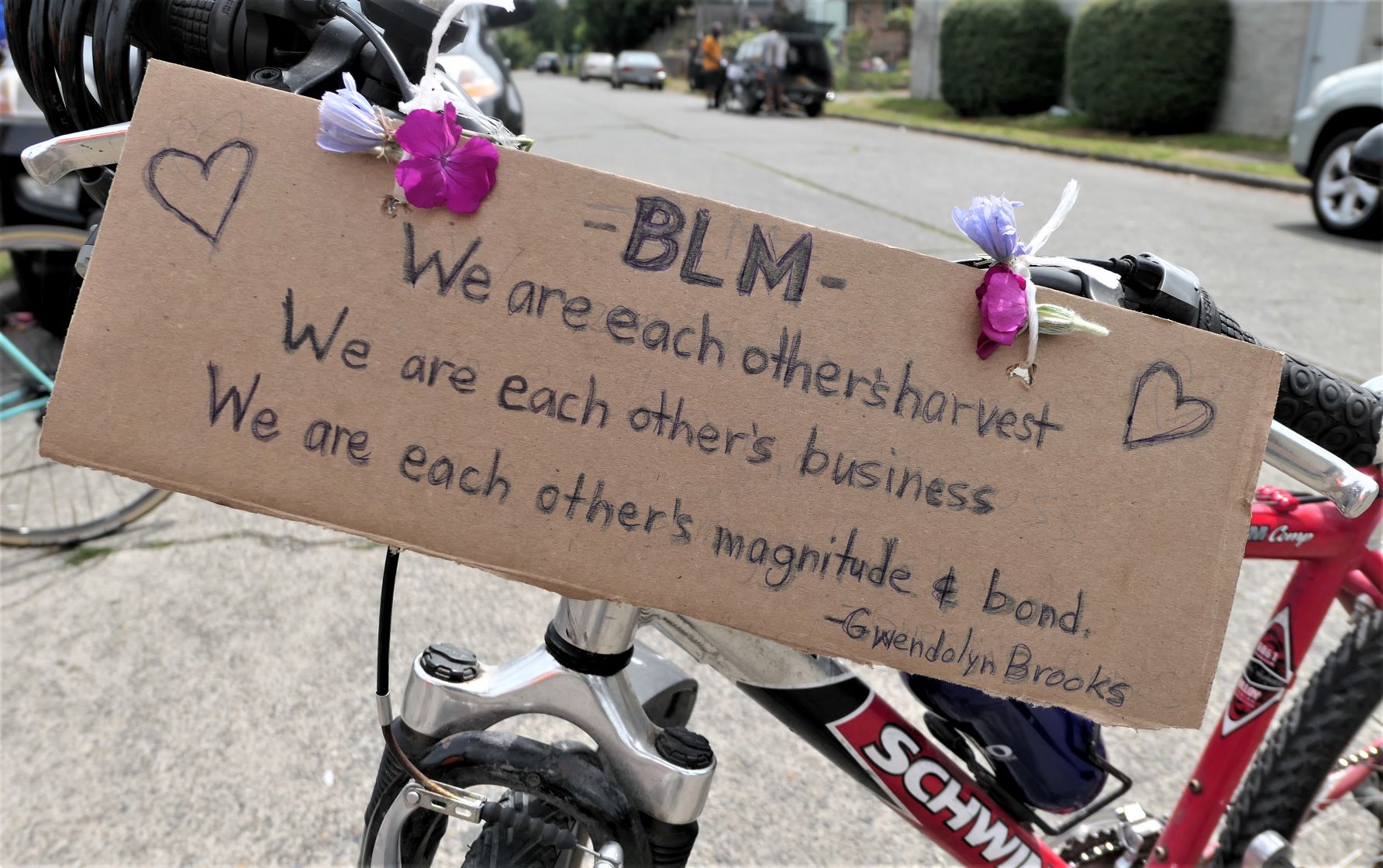 The message was clear: now is the time for white bicyclists to step up and focus on the community that is hurting, and help heal the pain.