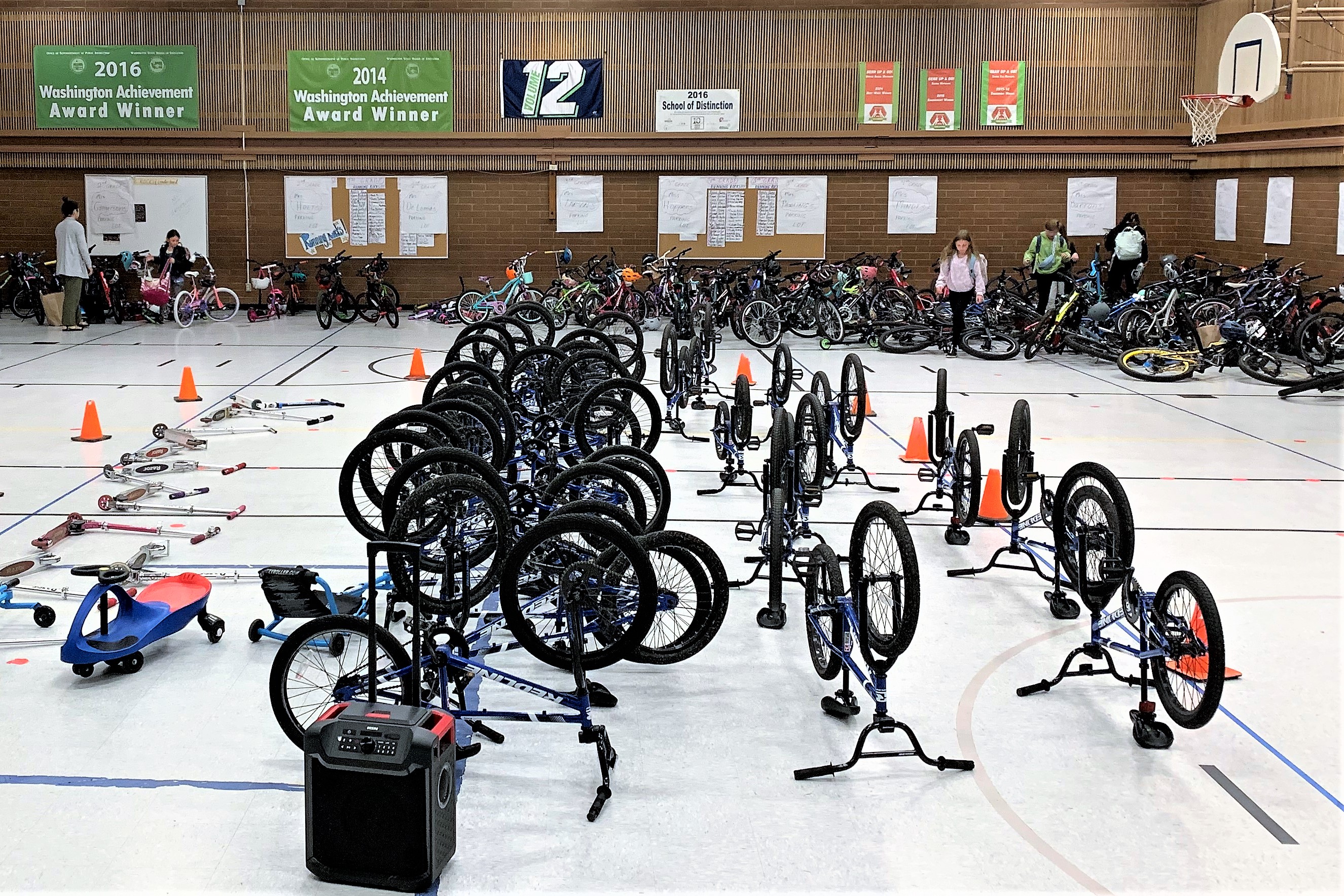 Cascade Bicycle Club provides and maintains the 93 bikes, plus the helmets and teaching materials, for Let’s Go Edmonds, which is taught by physical education teachers in the school district’s 21 elementary and four middle schools.