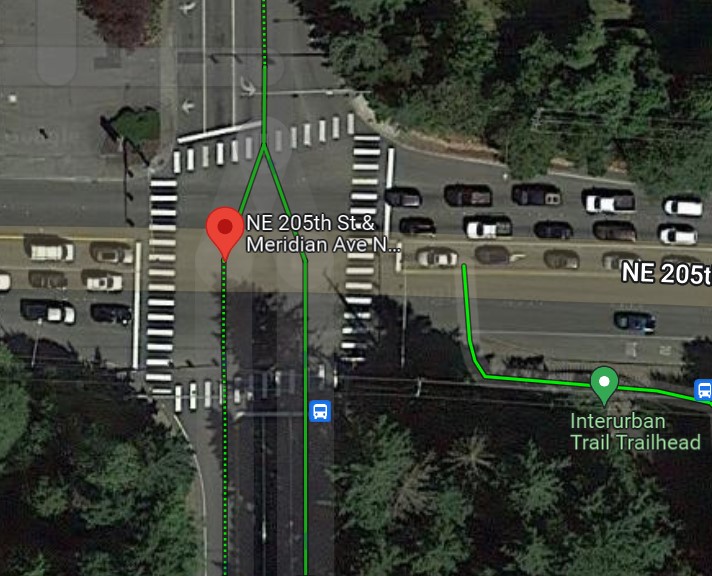 “The Interurban Trail puts cyclists into a bike lane on 76th going up a steep hill. Then just before the intersection with SR 104, the bike lane disappears!” she writes.