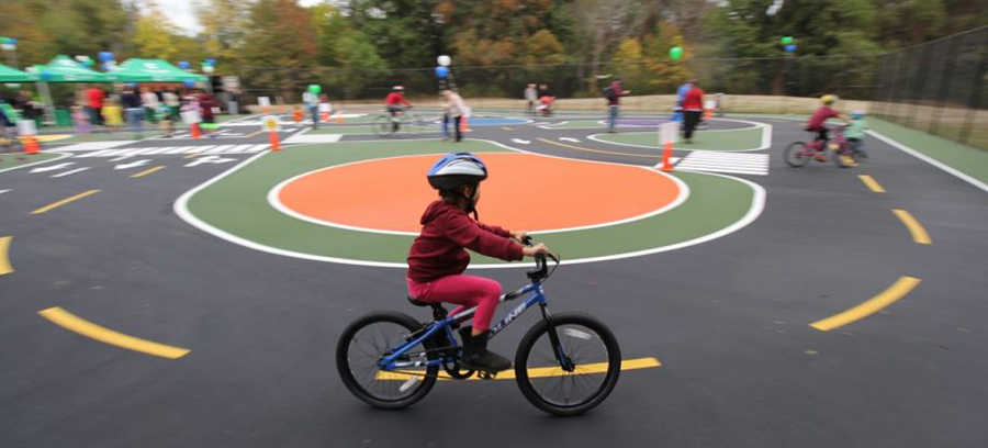Located in Dick Thurnau Park, the White Center Bike Playground is a great example of a traffic garden. Located on disused tennis courts, it features a small-scale colorful streetscape complete with realistic road markings and obstacles. Bicyclists of all ages come to have fun riding bikes and learn about roadway safety in a safe, comfortable setting. Cascade and its partners have made use of the park to offer bicycling camps, community riding events, and more.