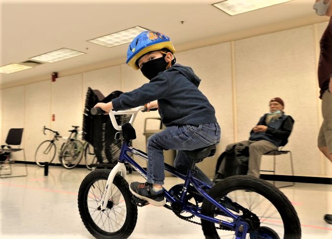 The image of this boy pedaling his new bike with training wheels captured the essence of the Seattle Bike Swap. His parents had just bought him the used bike at a steep discount, and he celebrated by jumping on and ripping across the showroom floor. Is there anything more hopeful and heartwarming than seeing a child begin their bicycling journey?