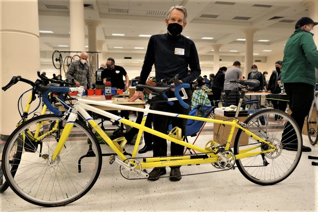 This nice man was selling a custom built tandem that he and his wife have ridden across Europe. They have upgraded to an electric assist tandem. The conversations and stories you hear at Bike Swap are another joy of the event.