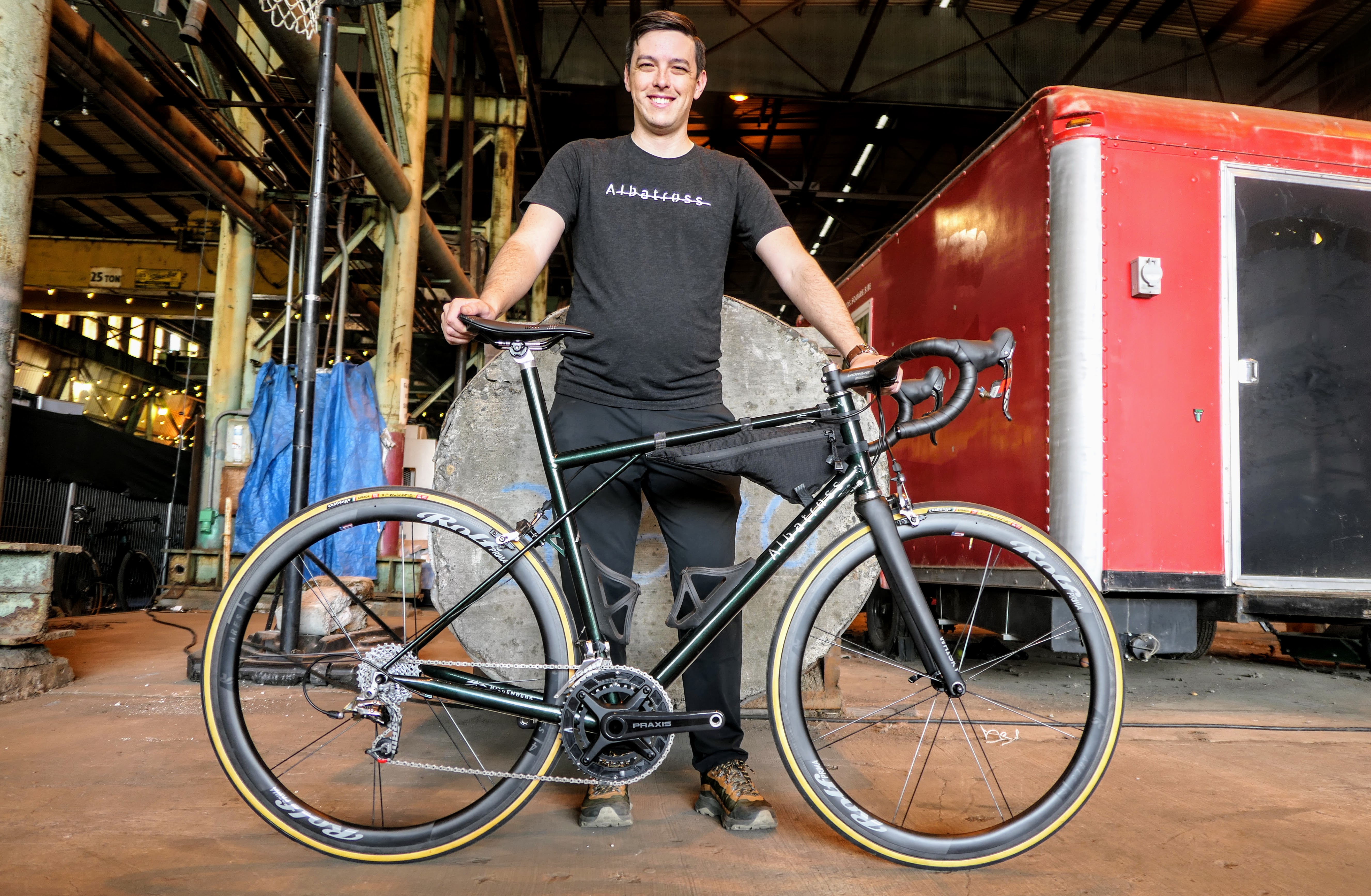 Founded in 1973, R+E Cycles is celebrating 50 years of building bicycles in Seattle's University District. R+E makes bikes under the Rodriguez and Erickson names. New owners Alder Threlkeld (below, holding a 13-pound road bike) and Max Hitch recently acquired R+E from its longtime owners. R+E specializes in touring and travel bikes made from lightweight steel tubing.