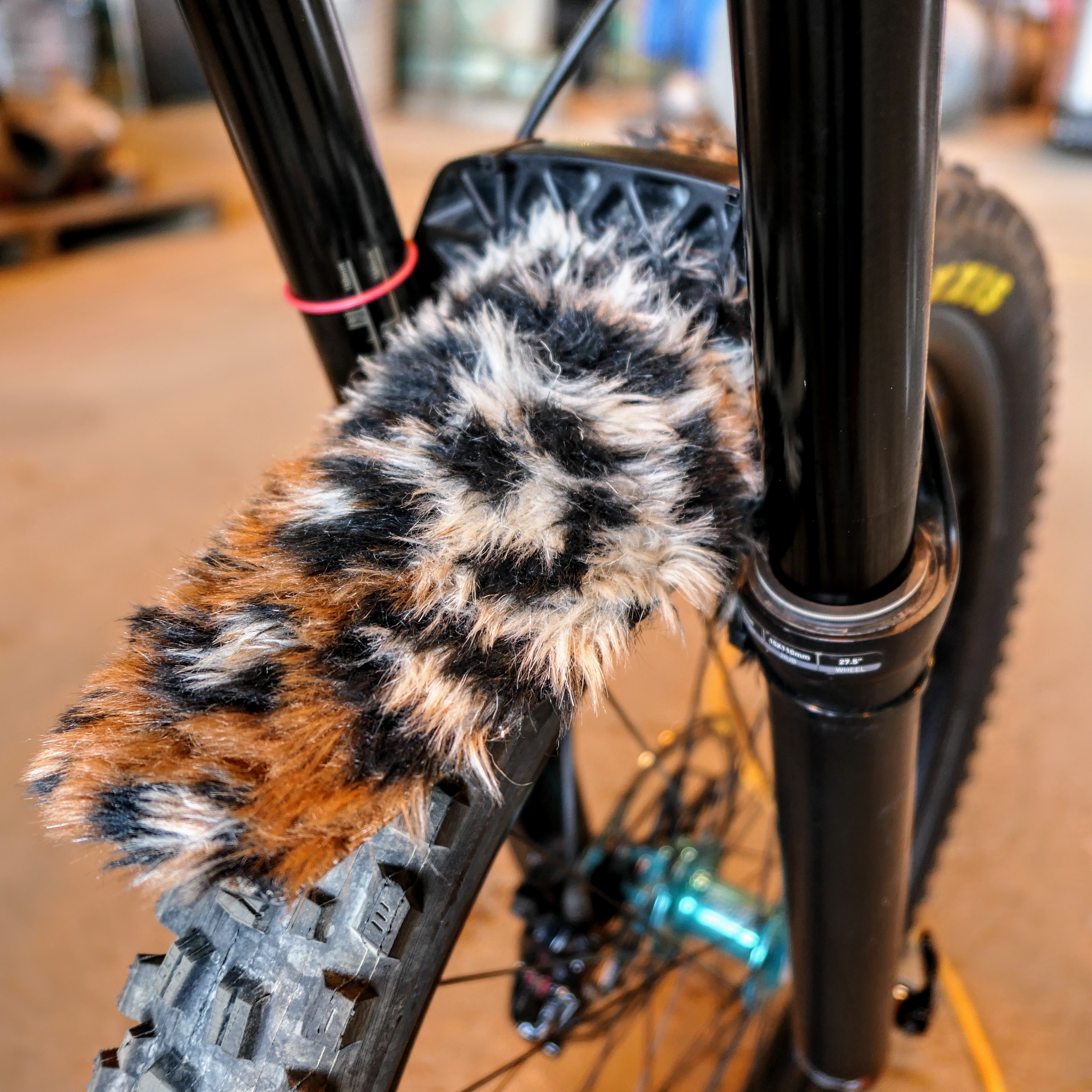 Donkelope makes custom mud guards (above) with fuzzy "merkins" for a bit of silly flare.