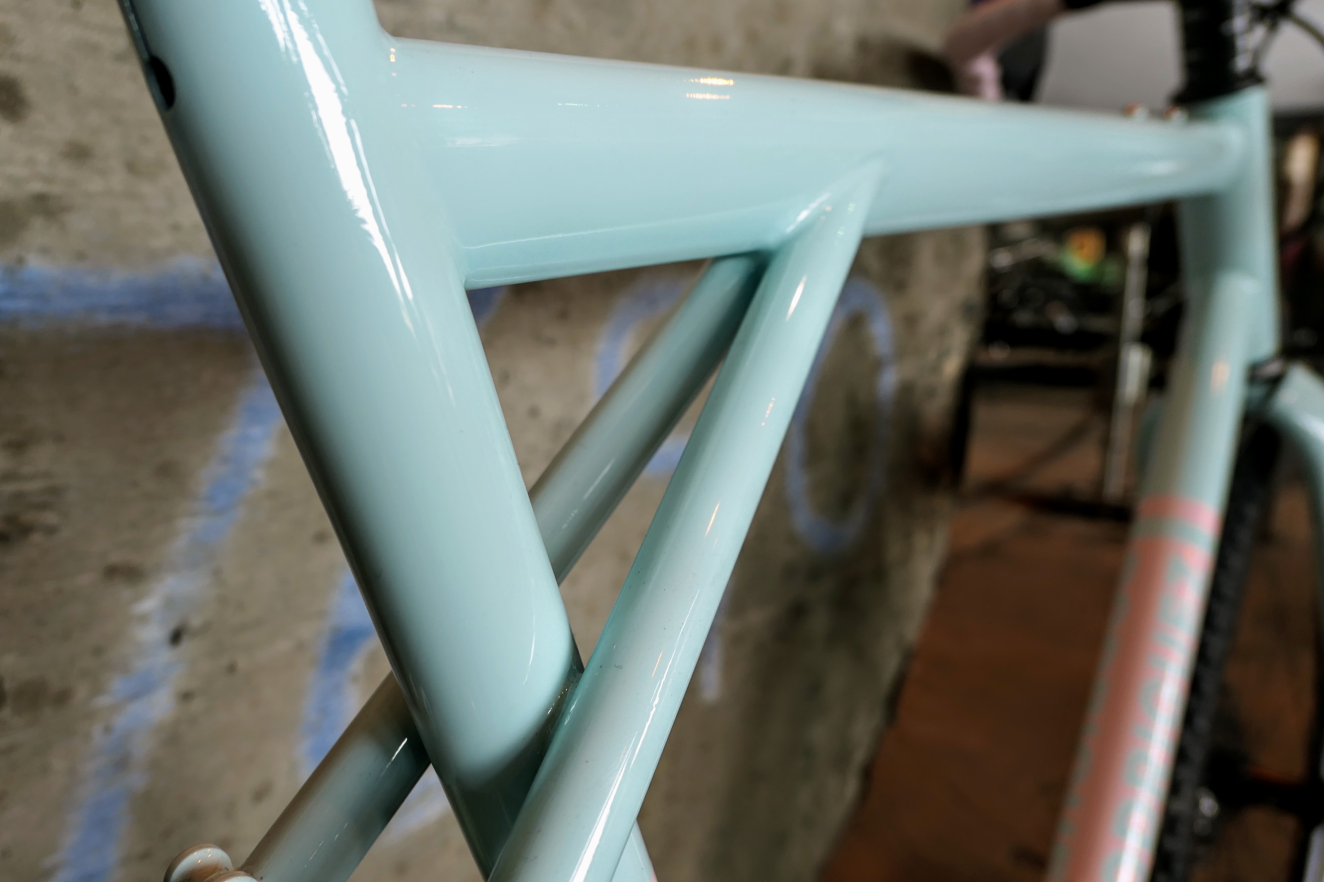 R+E paints all of its bikes on-site in the U District. Check out the finish on the road bike below.