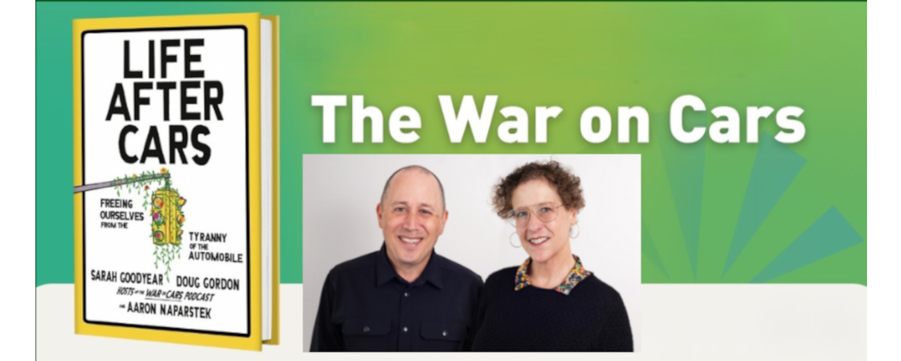 Kick off November Ride in the Rain with a cozy evening at Cascade Bicycle Club featuring the hosts of The War on Cars podcast, doors opening at 6 p.m. and event starting at 7. Sarah Goodyear and Doug Gordon, will read from their new book, Life After Cars: Freeing Ourselves from the Tyranny of the Automobile and answer audience questions.