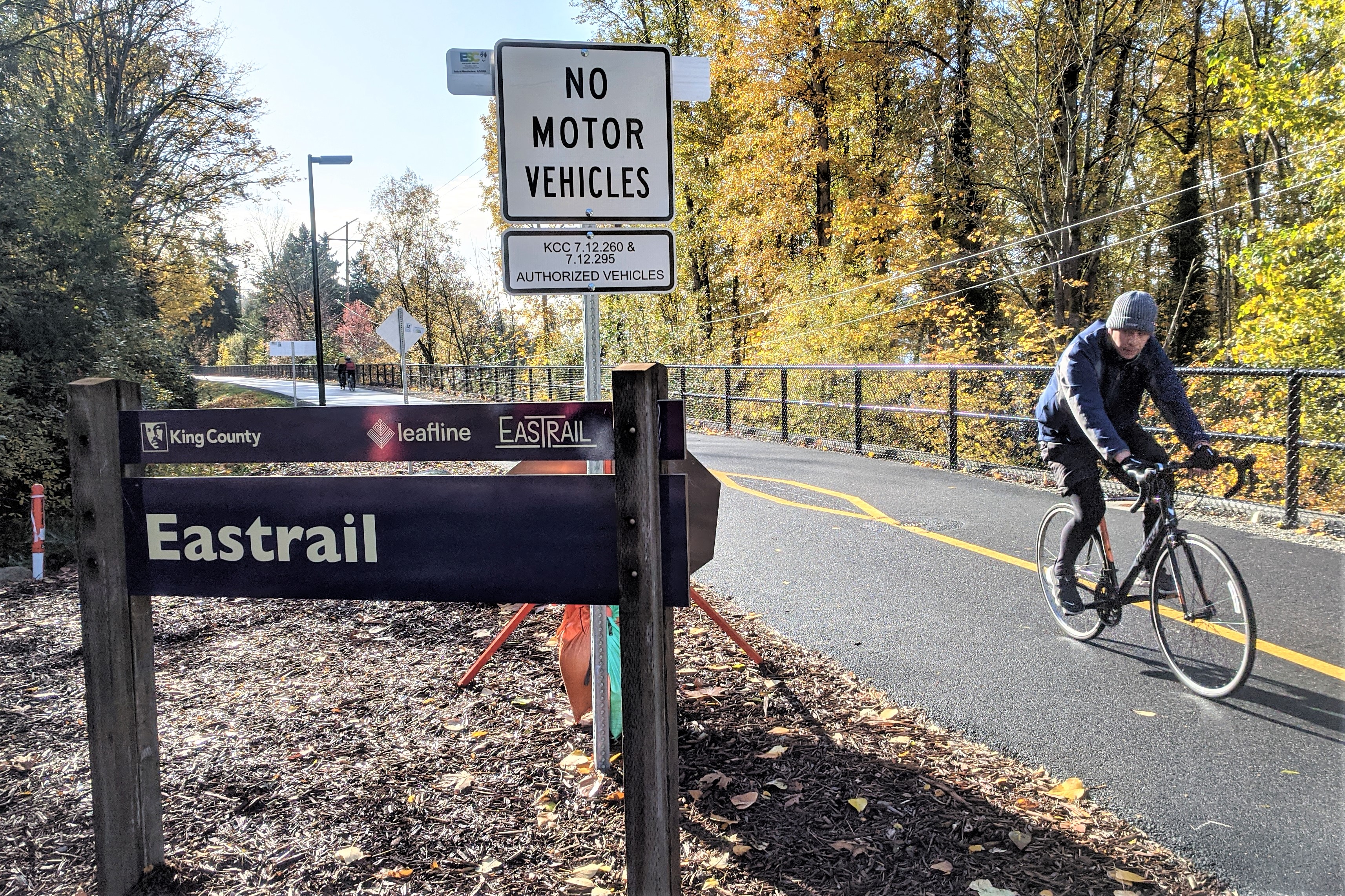 The Eastrail bike and multi-use trail received $29 million in state funding earlier this year to accelerate work and close gaps in the regional 42-mile route. Read our previous post about how the Move Ahead Washington funding will fast-track completion of two bridges and other projects on the Eastrail.